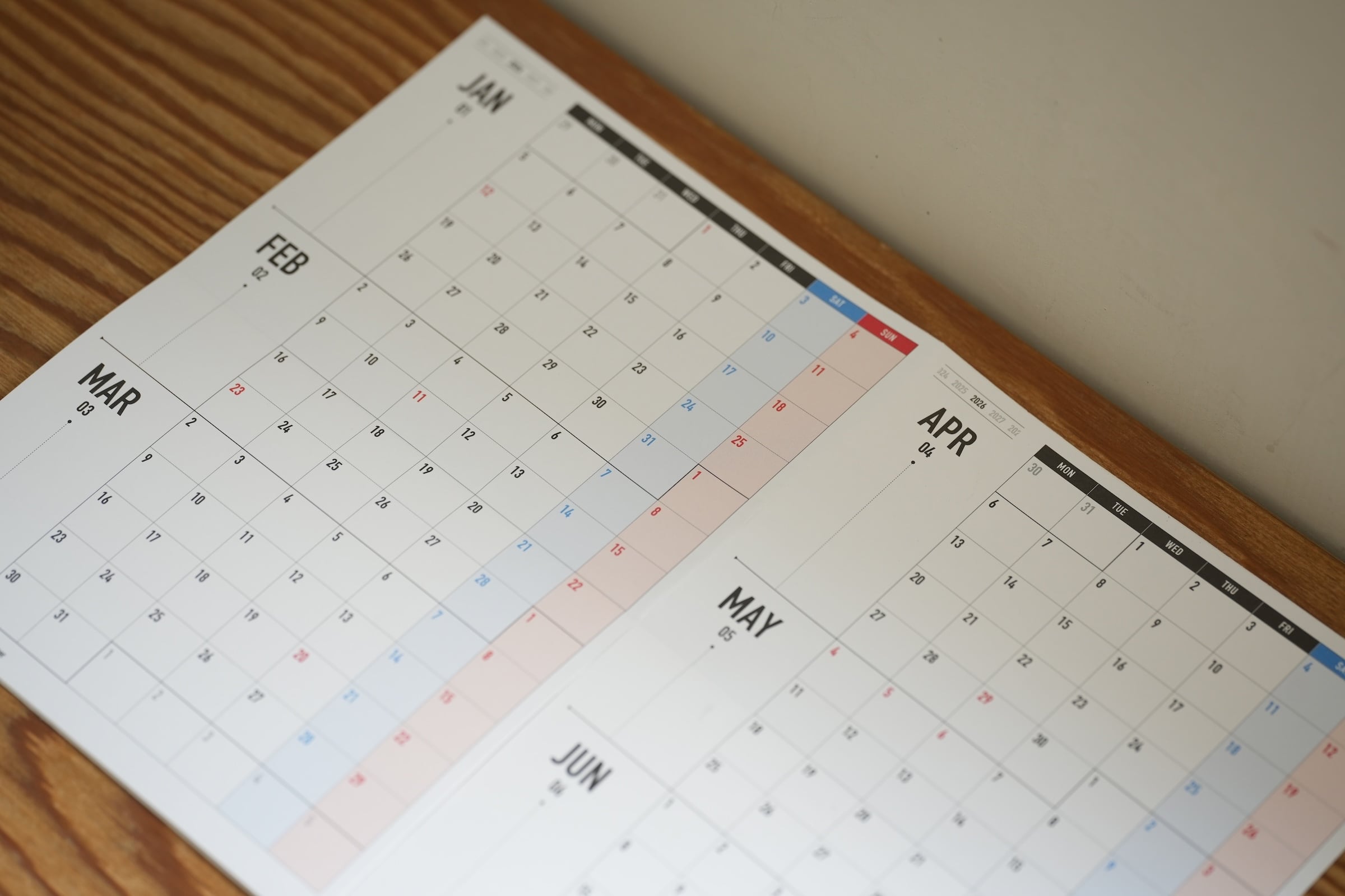 四つ折りから二つ折りに切り替えると、半年(6ヶ月)のスケジュールが一覧可能です。