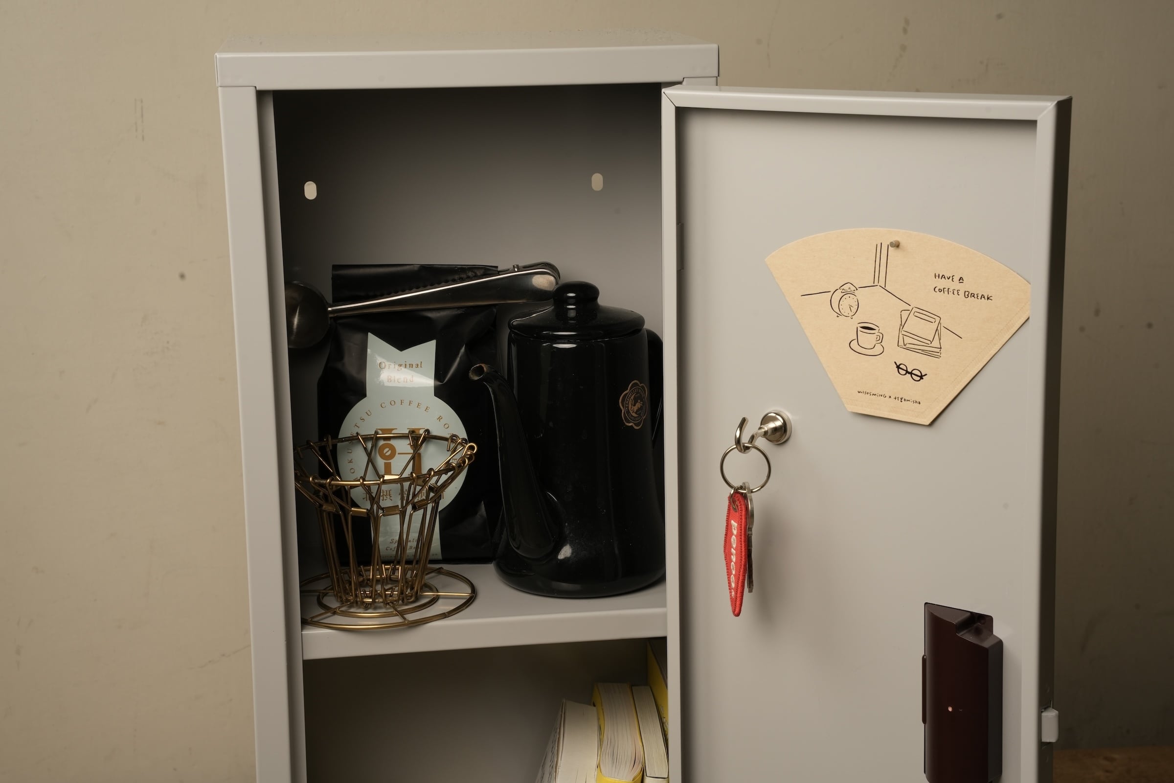 日本の街のあちこちで人々の安全を静かに守り続けてきた、メイドインジャパンの堅牢な箱が、その確かなつくりと折り目正しい佇まいはそのままに、暮らしの中に置ける「小さな自分だけのロッカー」になりました。