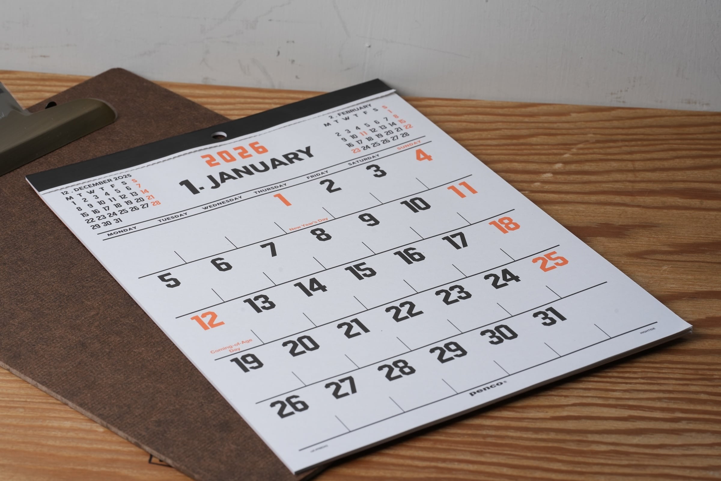 ハイタイドを代表するアイテムであるクリップボードに挟んで飾るとこの上なくかっこいいカレンダーです。
