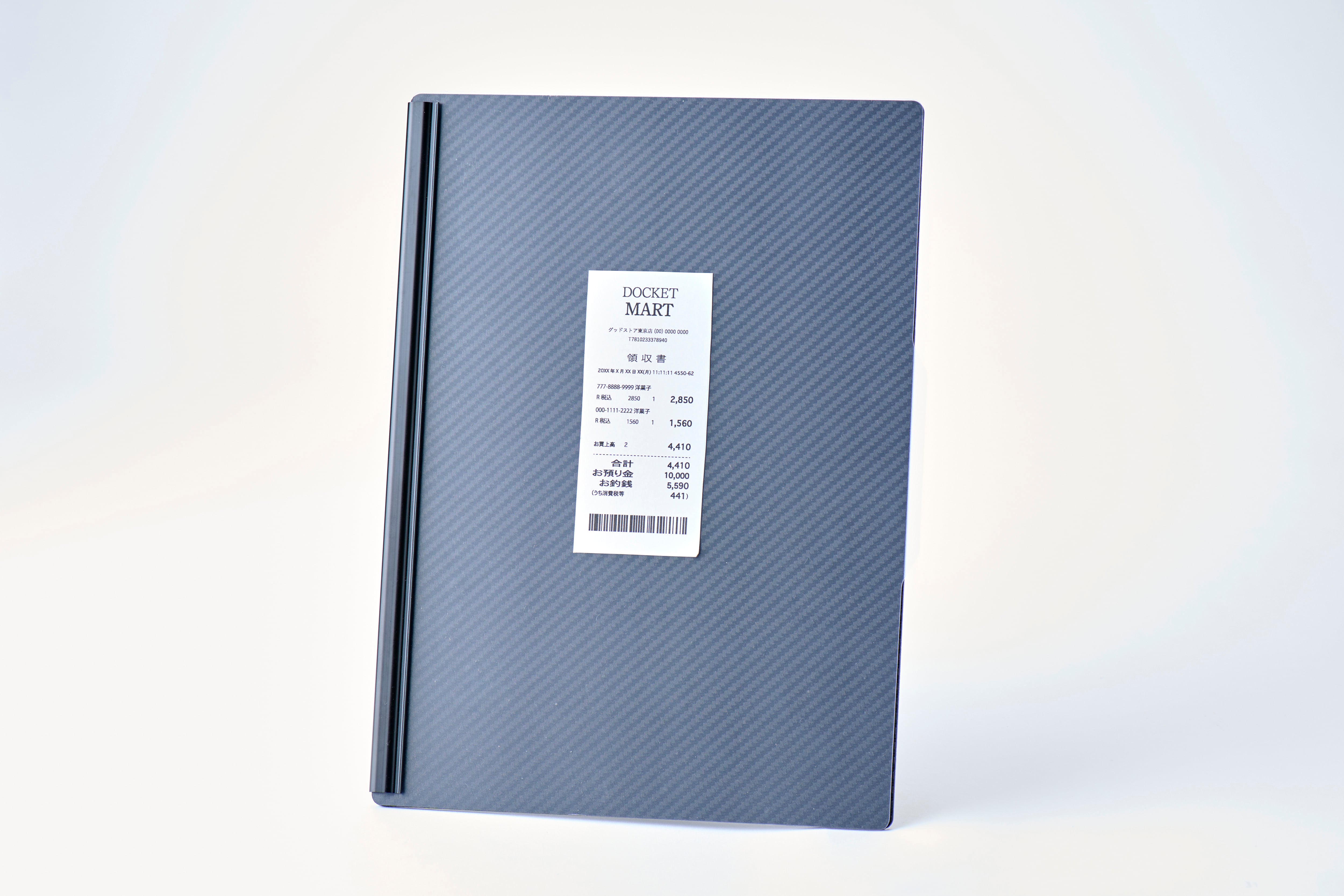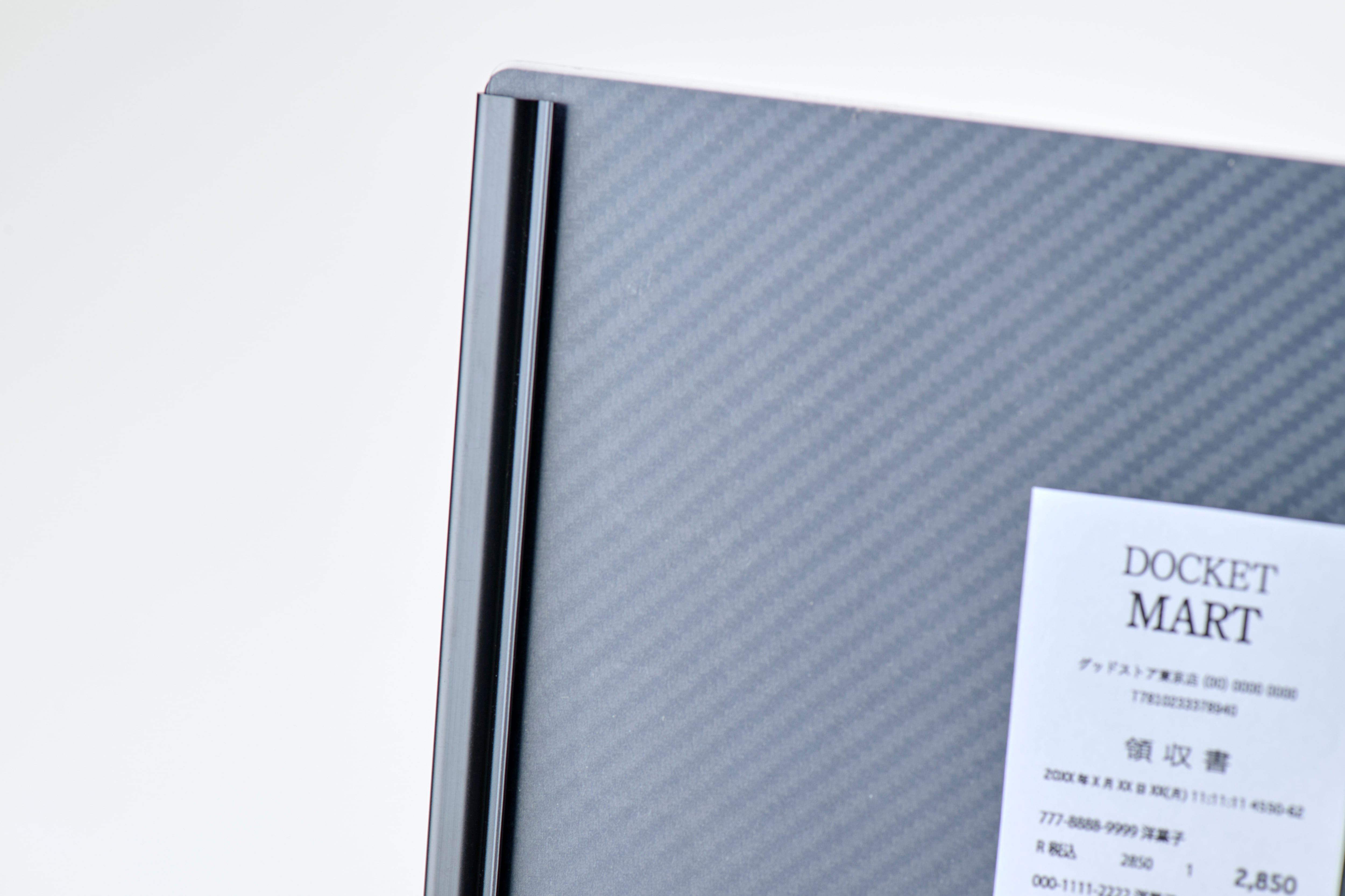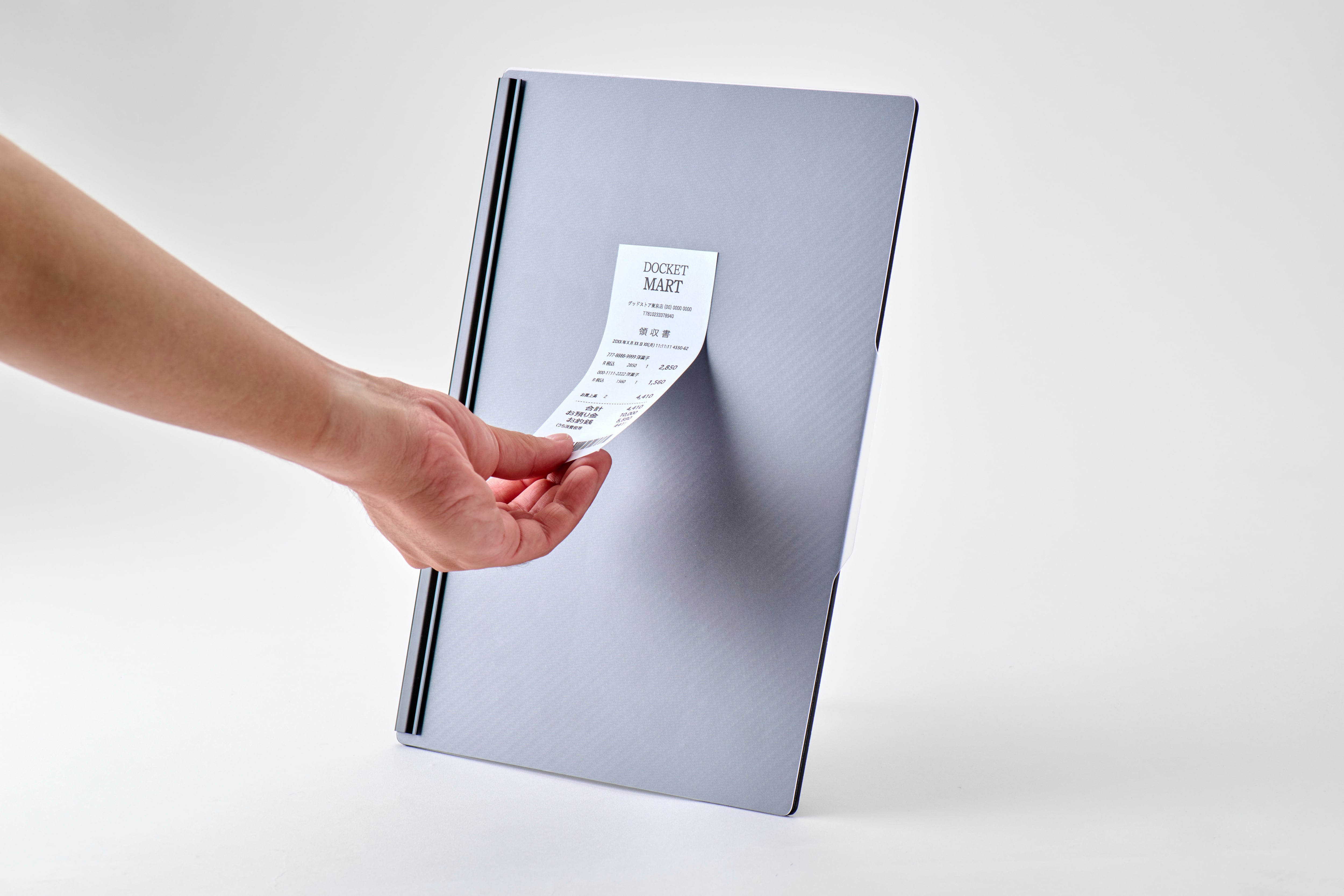 静電チャックのパイオニアであるクリエイティブテクノロジー株式会社の静電気吸着の機能を取り入れることで、きれいなレシートは低反射シートで挟まなくても表面に貼り付けて固定できるようになりました。