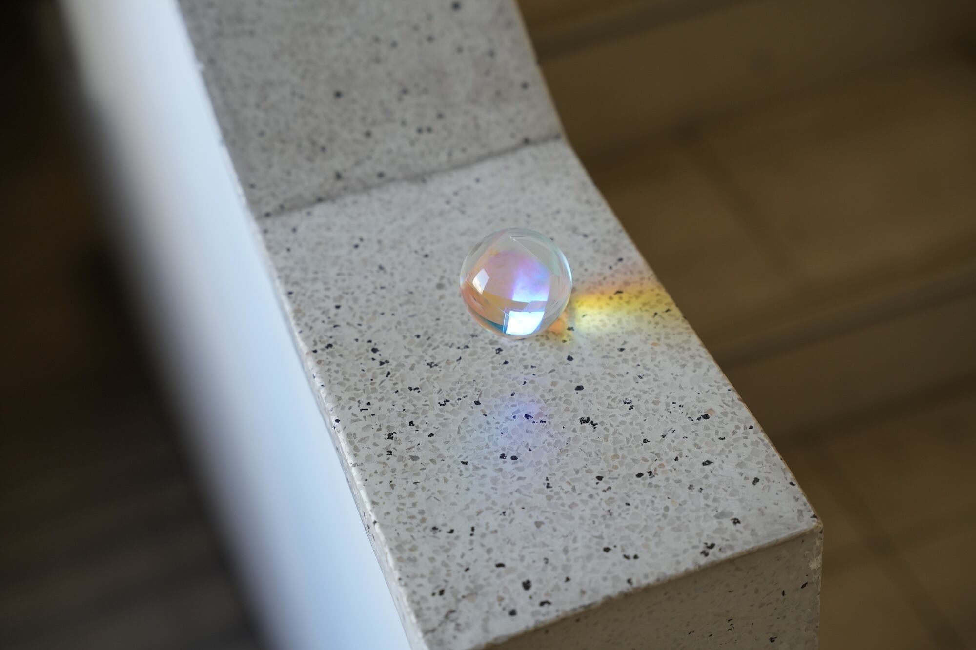 プリズムボールを飾るための台座もセットでお送りいたしますので、転がしたり、窓辺に置いてみたりしながら光が描き出すグラフィックをお楽しみください。