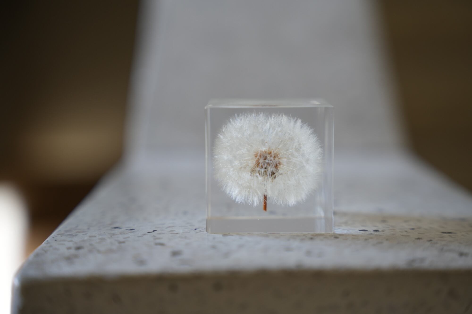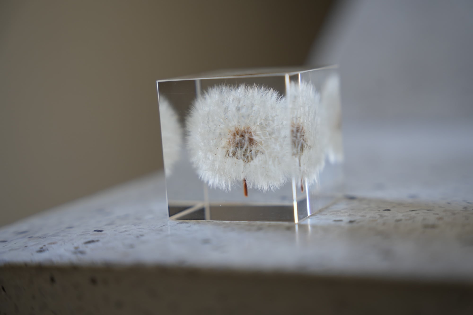 ・Sola cube は1つ1つ職人が手作りしています。封入されている植物の大きさ、色、形はすべて異なります。
